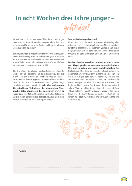 Wussten Sie, dass Sie mit den richtigen Nahrungsmitteln Ihre Zellalterung verlangsamen und Ihr biologisches Alter senken können? Entdecken Sie, wie Sie durch einfache Anpassungen an den kleinen Stellschrauben drehen, die einen großen Einfluss auf Ihre Gesundheit haben. Mit unseren Rezepten können Sie direkt starten!