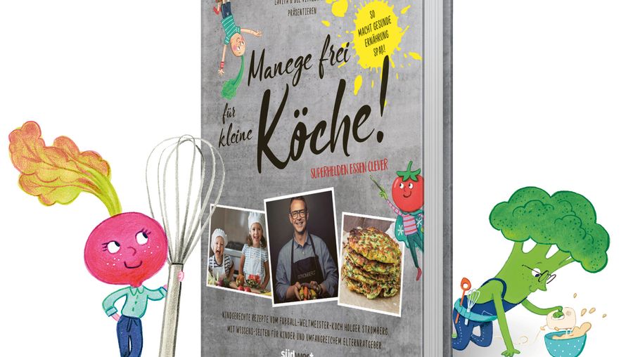 Holger Stromberg, ehemaliger Koch der deutschen Fußball-Nationalmannschaft, sorgt für 33 kindgerechte Rezepte mit "Superkräften", vom Snack über Hauptgericht bis zur süßen Leckerei.