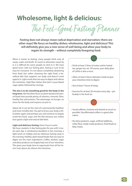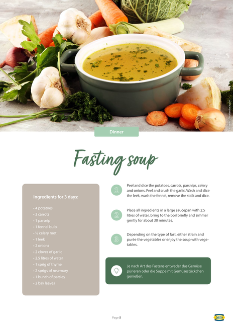 Fasting doesn't have to be difficult or time-consuming. With our 3-day well-being fasting planner, you can give your body a break - perfect for a weekend and also compatible with work. Healthy, nutrient-rich meals will support you in the process.