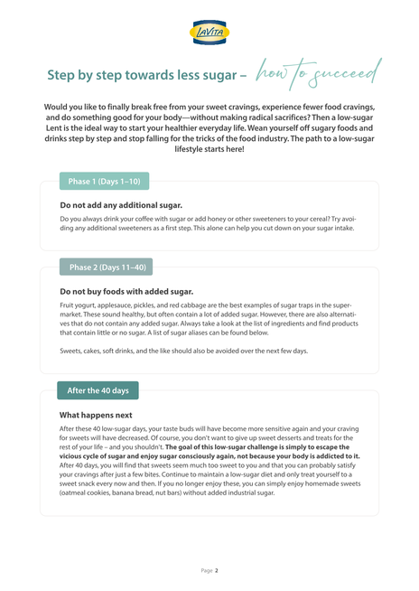 Are you interested in a daily life with less sugar? With our 40-day challenge, you will be able to gradually reduce your sugar intake and live healthier at the same time. Discover simple tips on how to recognize sugary foods in the supermarket and make healthier choices without sacrificing enjoyment.